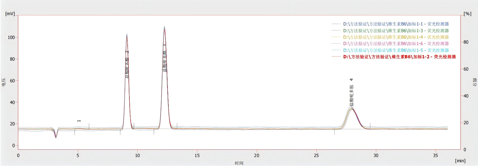 图 2 维生素B6的重现性色谱图