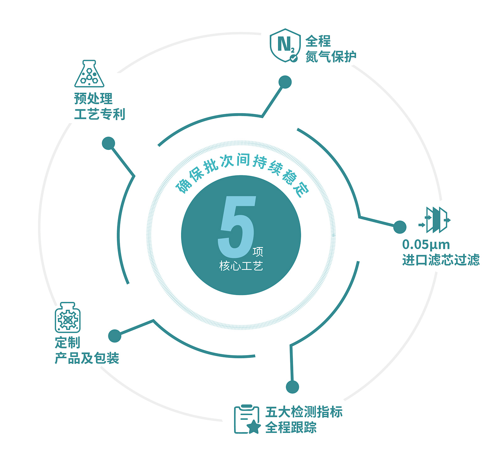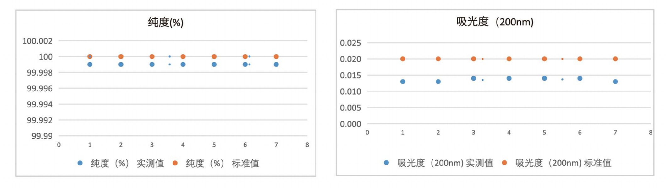原料来料、原料入罐、预处理、精馏纯化、入半成品罐、入成品罐、成品灌装、放行入库八个步骤,每个步骤均会对纯度、水分!酸碱度、紫外吸光度/透光率及其他质量指标进行检测,监控每个步骤的质量数据。每批次产品的检验报告书可通过星可微信公众号及官网进行查询,确保产品质量的可追溯性。