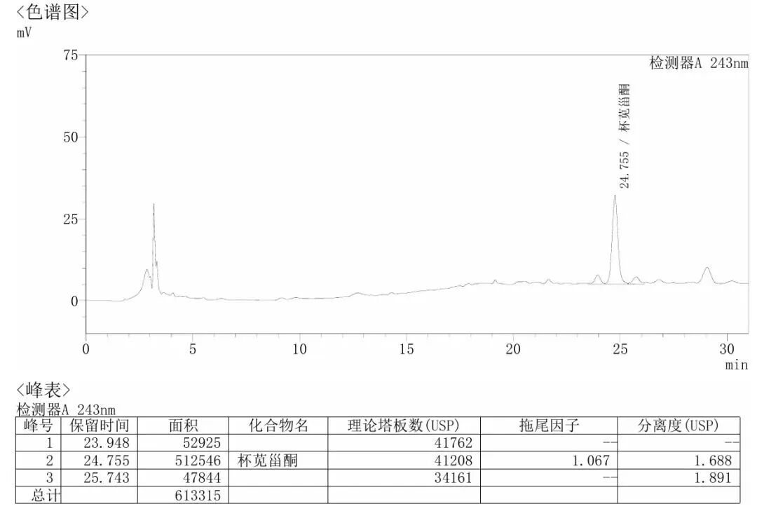 色谱条件与系统适用性试验 以十八烷基硅烷键合硅胶为填充剂;以(星可)甲醇为流动相A,以水为流动相B,按下表中的规定进行梯度洗脱;检测波长为243nm。理论板数按杯苋甾酮峰计算应不低于3000。