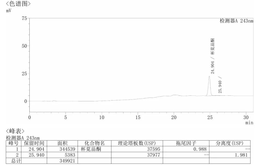 使用(星可)甲醇作为流动相,色谱柱iMagiLab,MB-C18,5μm 4.6*250mm对川牛膝进行含量测定,目标峰峰形好,杯苋甾酮峰理论塔板数高于3000,结果符合药典要求。