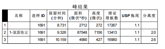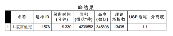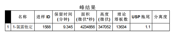 图1 氯雷他定片对照品色谱图及峰表