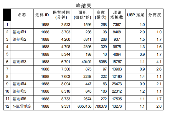 图4 氯雷他定片供试品色谱图及峰表